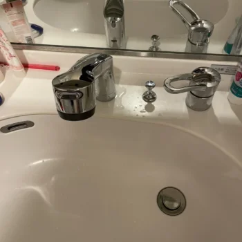 洗面所下部にある配管接続部分のパーツや排水トラップ・排水口パッキンの劣化、排水管のつまりなどで水漏れする場合、部品の交換や修理で対応できます。