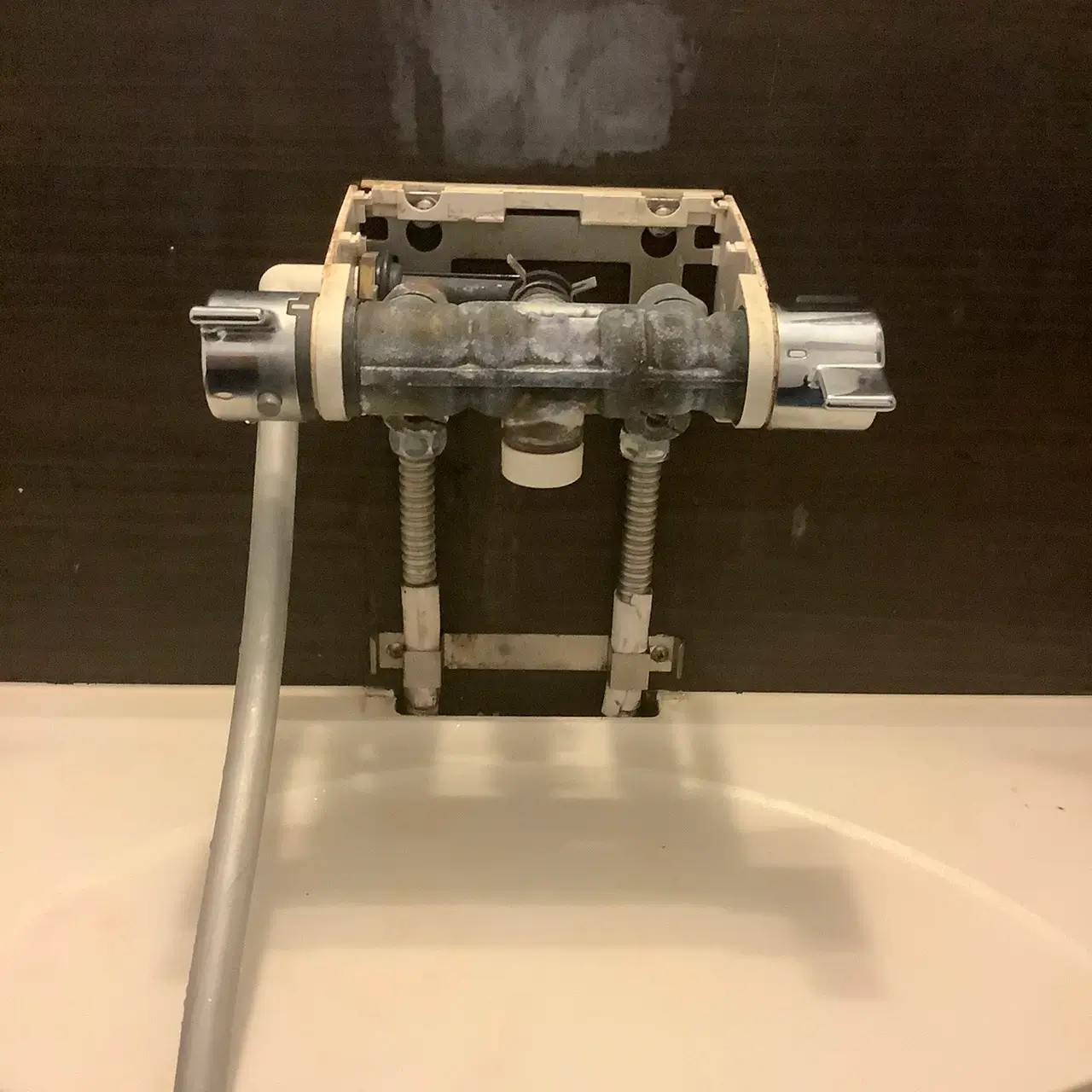 今回はシャワー配管からの漏水が確認されたため、新しい風呂水栓を設置しました。
