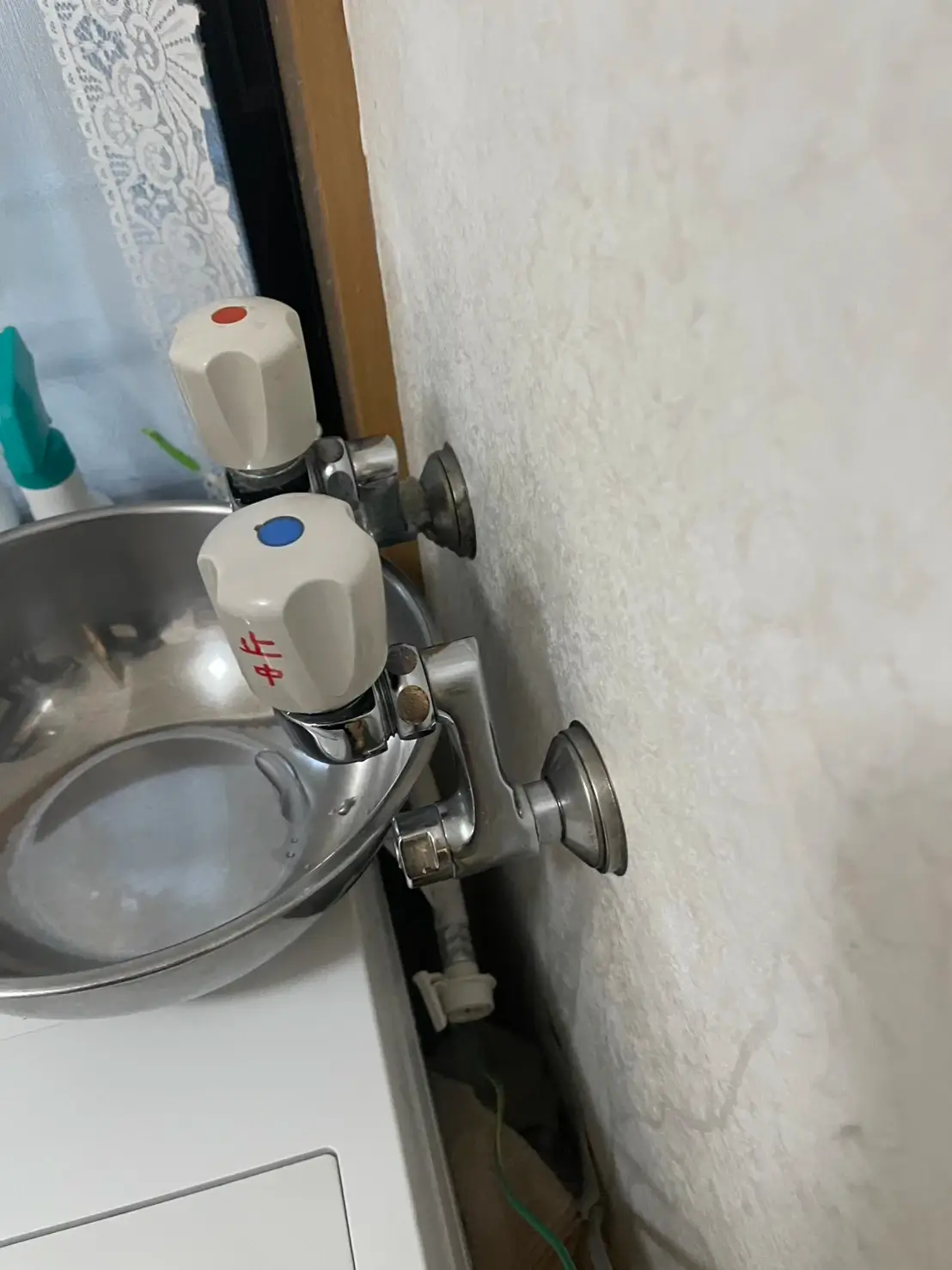 洗濯中に床が濡れていることに気づき、よく見ると蛇口から水が漏れていました。