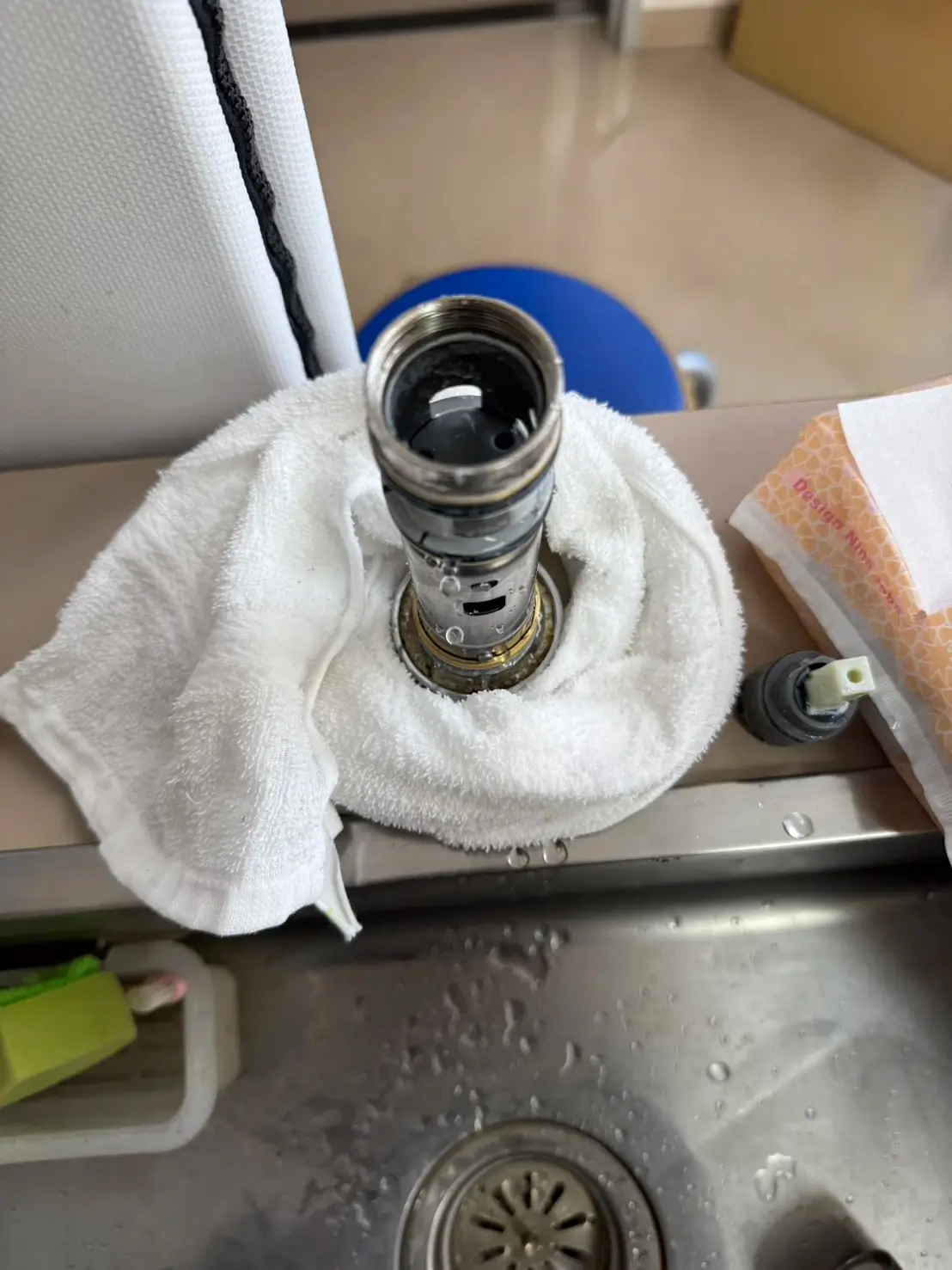 現場では蛇口の状態を確認し、劣化していた部品を交換することで、水漏れを確実に解消いたしました。