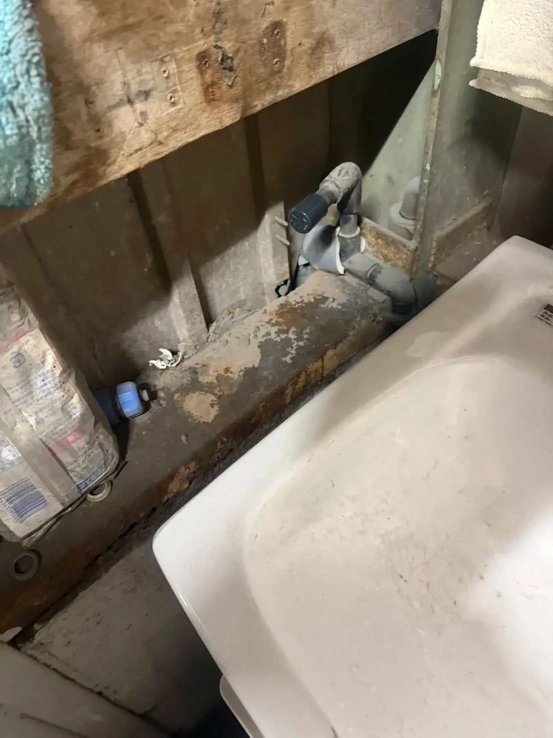 洗面台の下から水がにじんでいるのに気づき、よく見るとトイレにもつながっている排水管から漏れていて本当に焦りました。