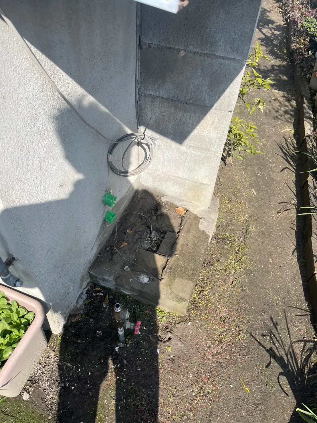 庭へ出たところ、地面が濡れていてボイラー付近から水が漏れているのを見つけました。