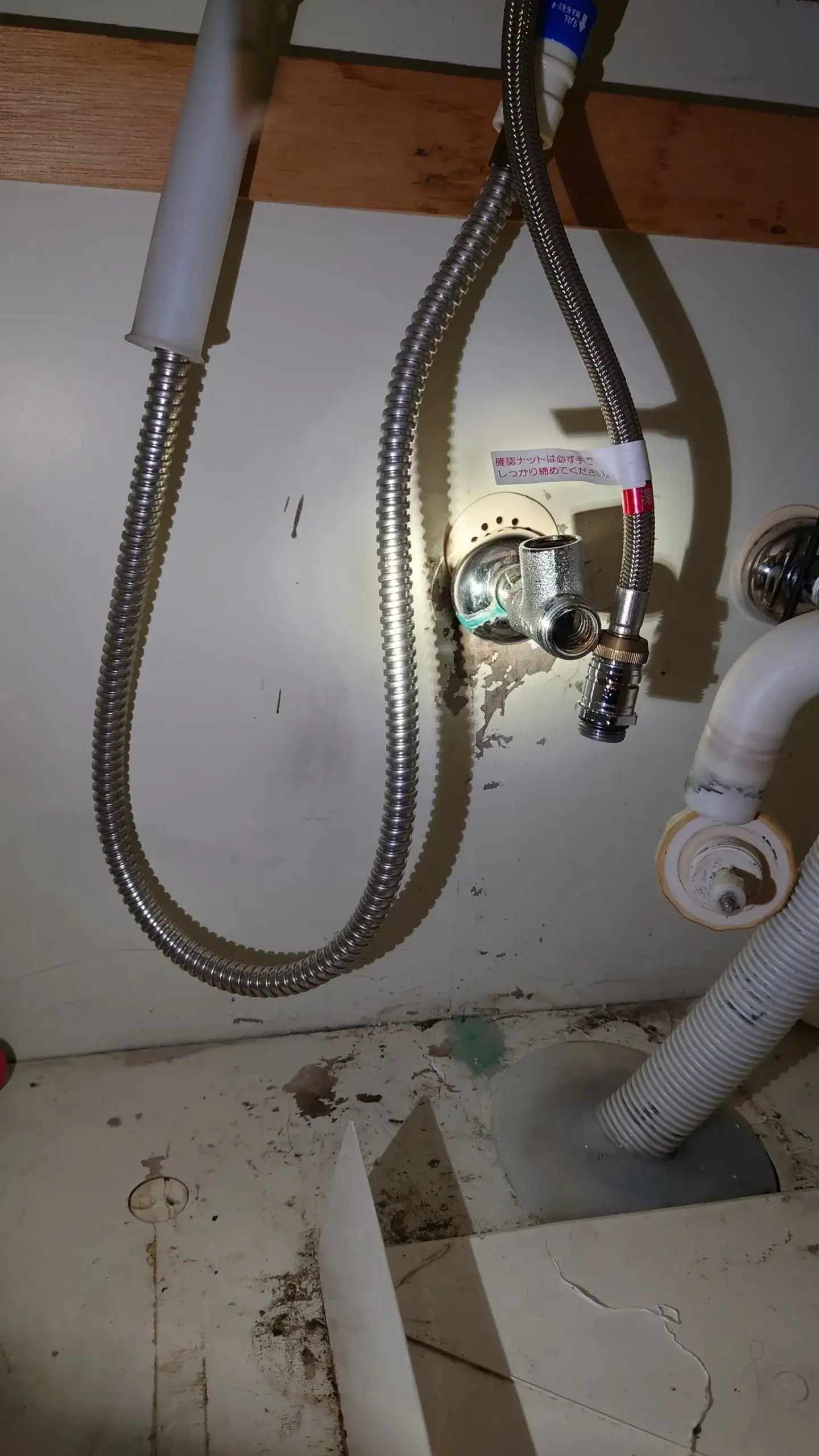 水が少しずつ下に垂れていたのですが、時間が経つにつれて漏れの勢いも増してきて、自分ではどうにもできませんでした。