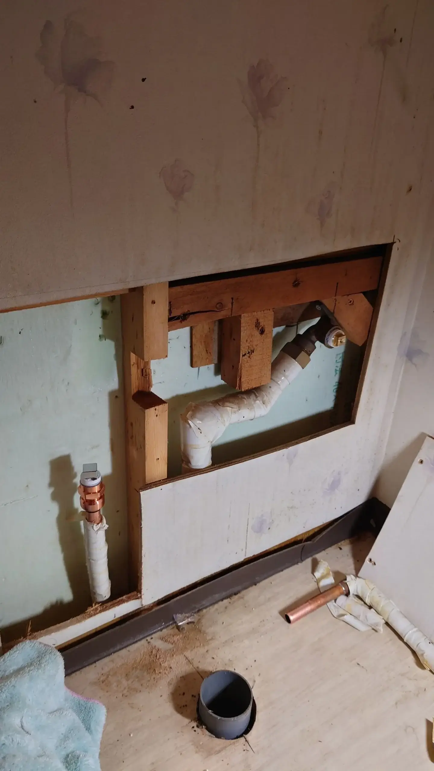 到着後は、作業員の方が蛇口と配管の状態を詳しく確認し、「部品の劣化による漏水なので、洗面台を取り外して止水作業を行います」と説明してくださいました。