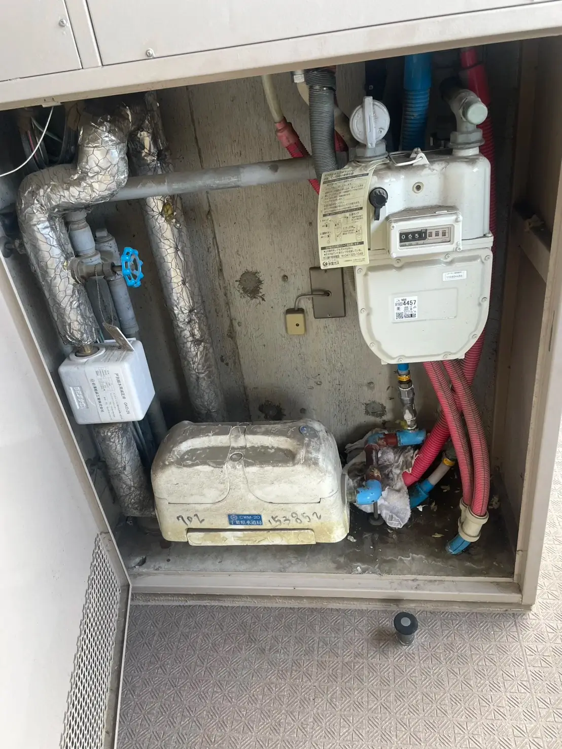 屋外の給湯器まわりに水たまりができていて驚きました。