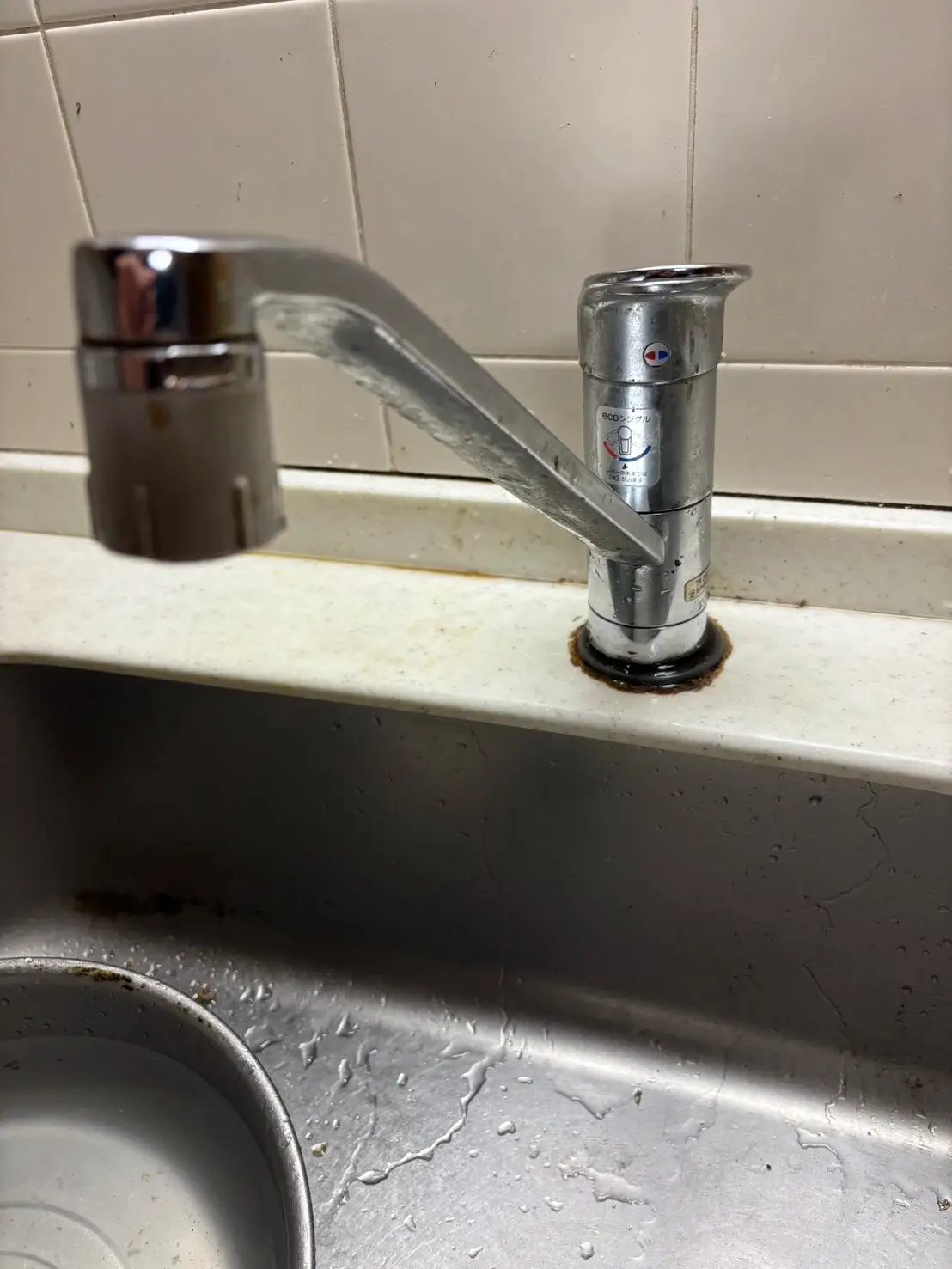 シンクの周りが濡れていることに気づき、よく見ると蛇口の付け根から水が漏れていました。
